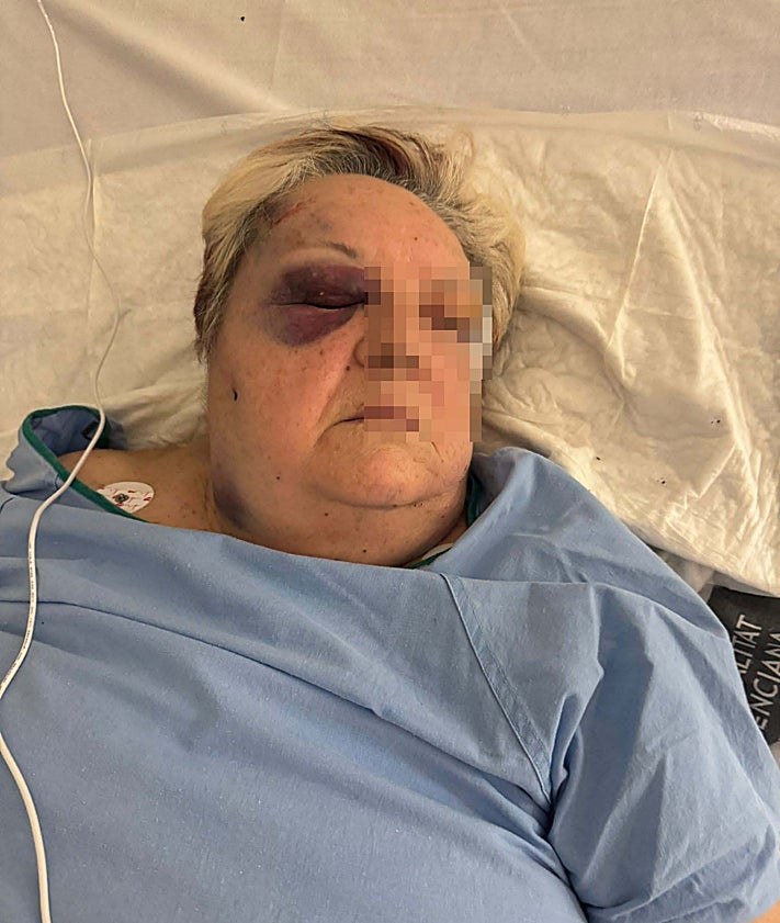 En la cara de Josefina se puede observar la brutalidad de la acción. Los hematomas son evidentes, con uno de sus ojos totalmente amoratado, al igual que una parte de la barbilla y en la frente. En el otro lado, en la cabeza, un apósito tapa una brecha con cuatro puntos de sutura. «Hoy todavía le ha salido más el hematoma. No hay derecho a estas cosas, a una señora que va tan tranquila por la calle a comprar», señala su hija. Josefina, una vez se recupere y salga del hospital, se personará en una comisaría de la Policía Nacional para presentar la correspondiente denuncia. «Nos dijeron que sólo la puede interponer ella», señala su hija, que asegura que los agentes de la policía incluso se han puesto en contacto con ella para ver el estado de su madre.