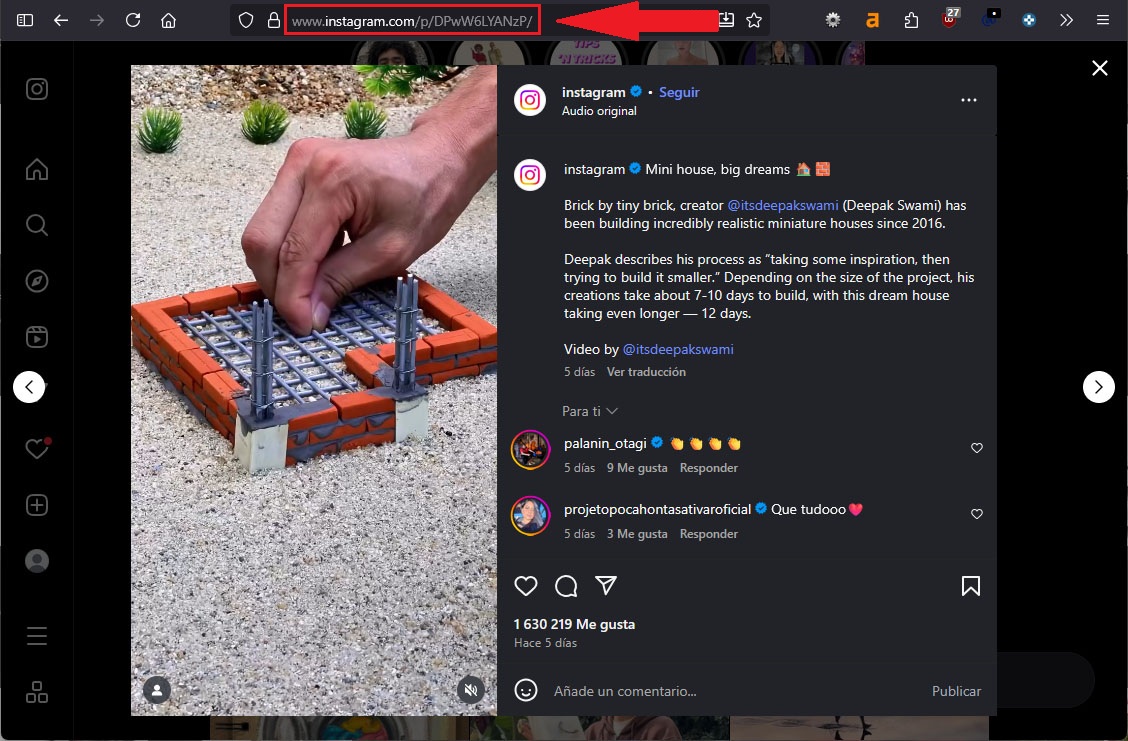 Se puede añadir fácilmente una publicación de Instagram a un post de una forma muy fácil. Lo primero es copiar la dirección de la publicación de Instagram: