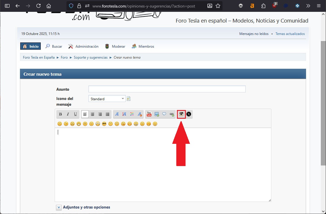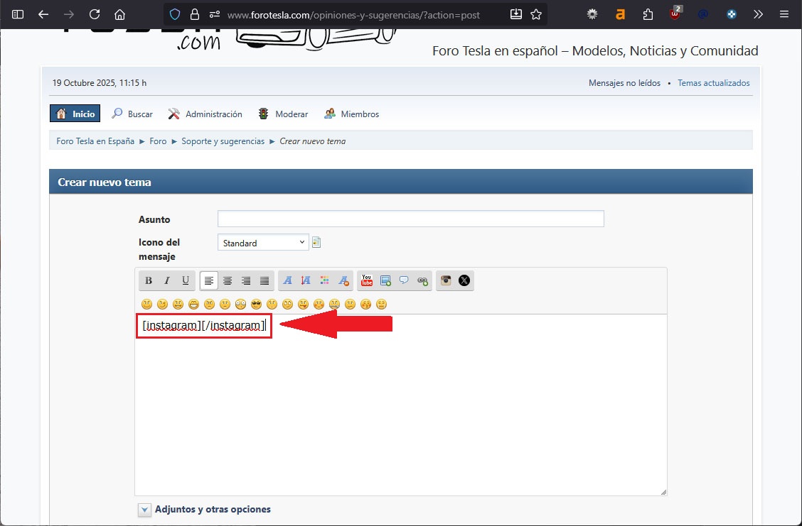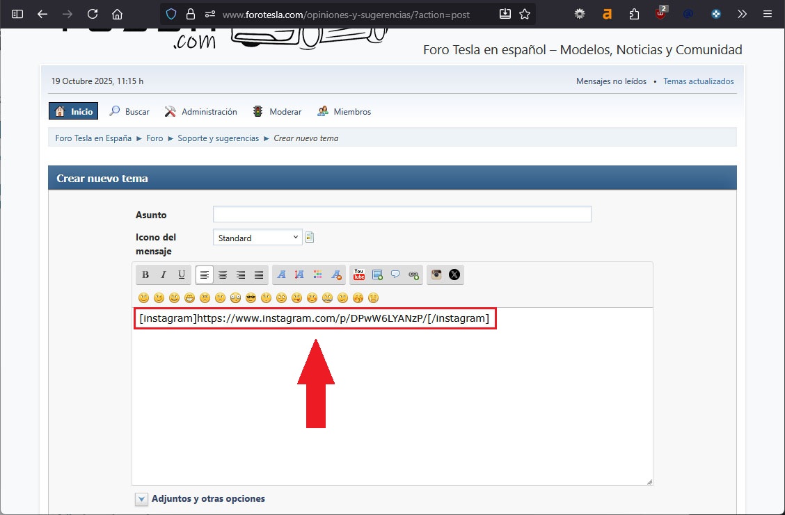 Al crear o contestar a un post el editor muestra el icono de Instagram: